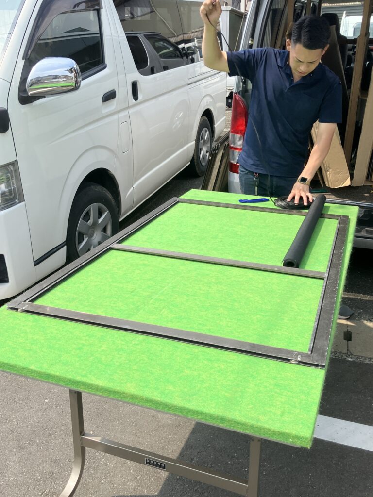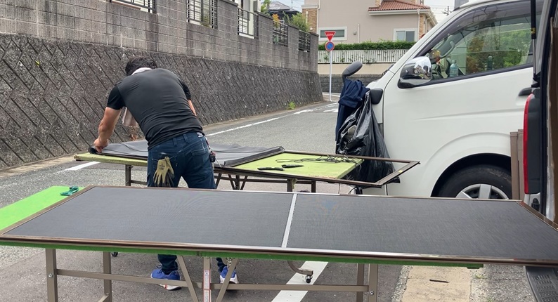 施工当日は真夏の炎天下。屋外での作業ということもあり、職人にとっては過酷な環境でした。