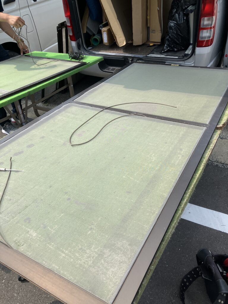 こうした天候の急変にも柔軟に対応できるのがプロの強みです。資材を濡らさない工夫や、再開後に効率よく作業を進める段取りなど、現場での判断力が活かされました。予定通りの時間内に全ての網戸を張り替えることができました。